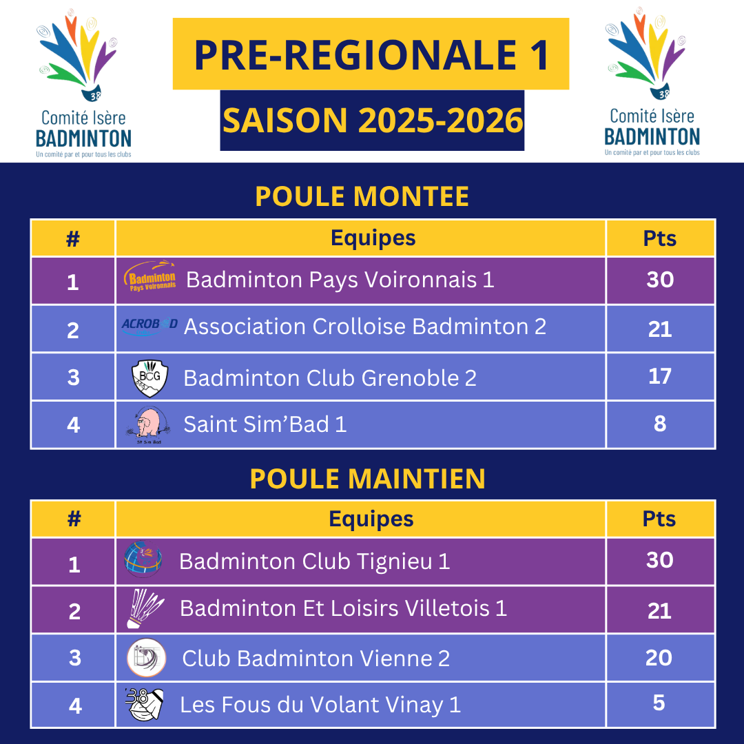 Fin de la saison régulière des interclubs pré-régionaux 2025-2026