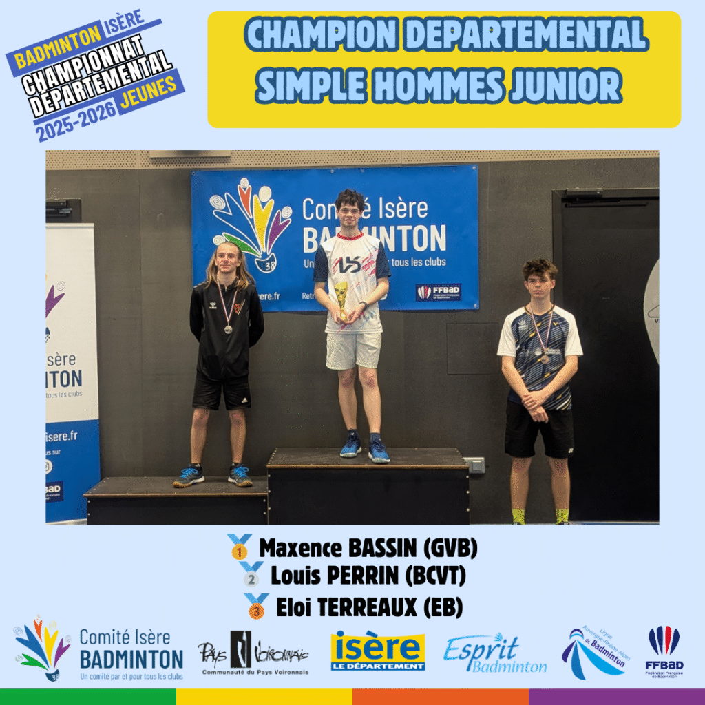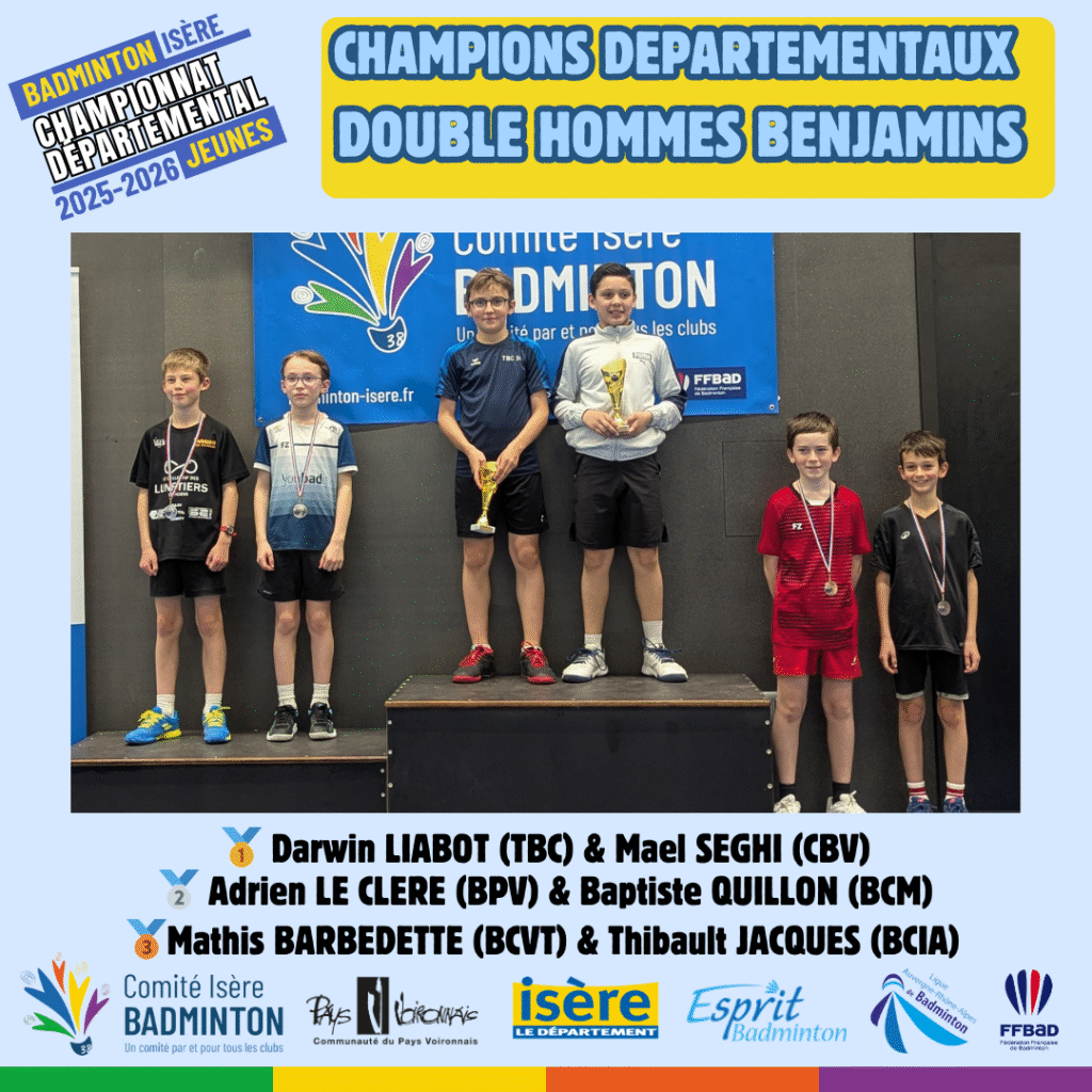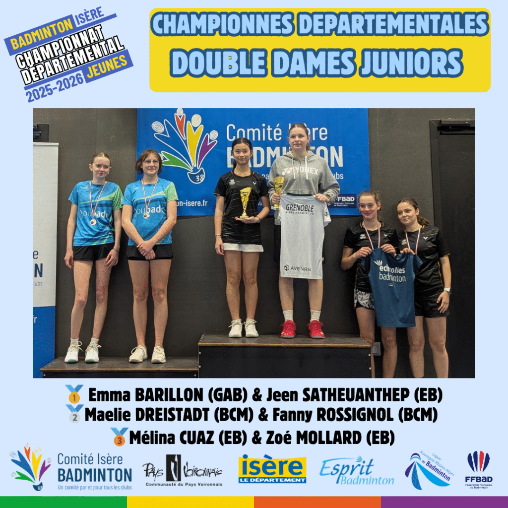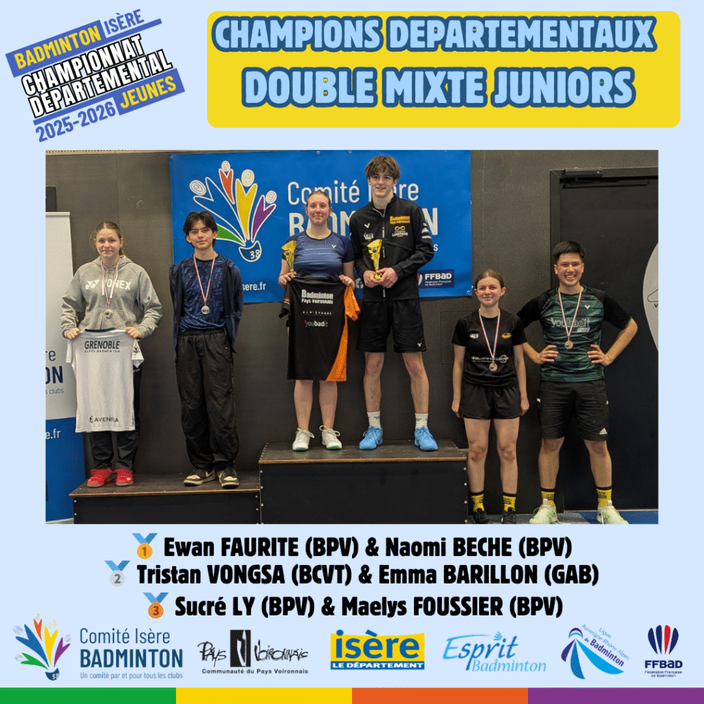 Ces 21 et 22 Mars 2026 à Voiron avaient lieux les championnats départementaux jeunes de l’Isere. De nombreux jeunes du département ont répondu présent à l’événement pour se disputer les titres de champions départementaux sur les 5 disciplines (simple hommes, simple dames, doublé hommes, double dames et double mixte) sur chacune des catégories d’âge (poussin, benjamin, minime, cadet, junior).