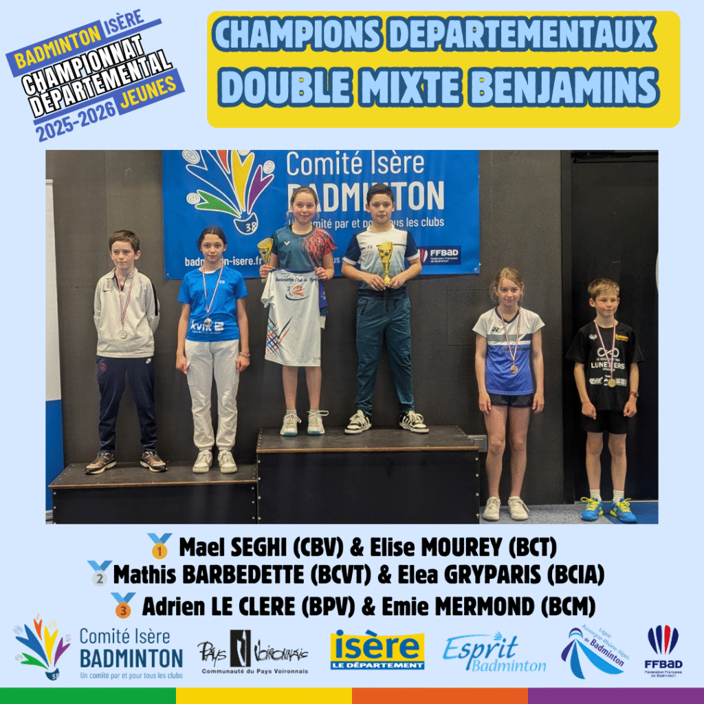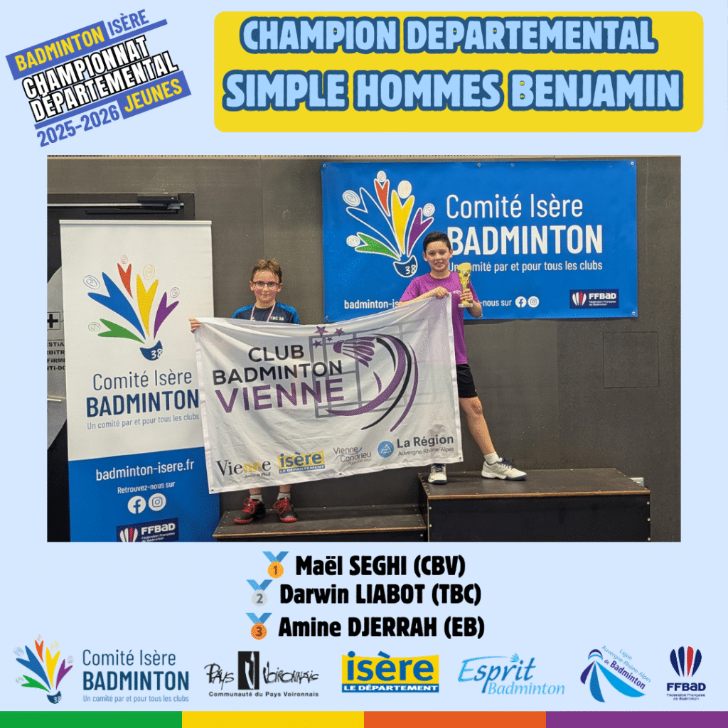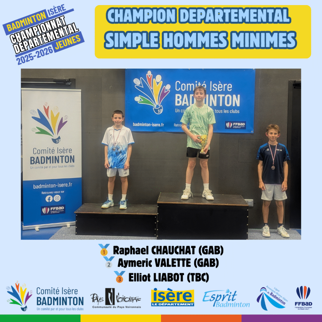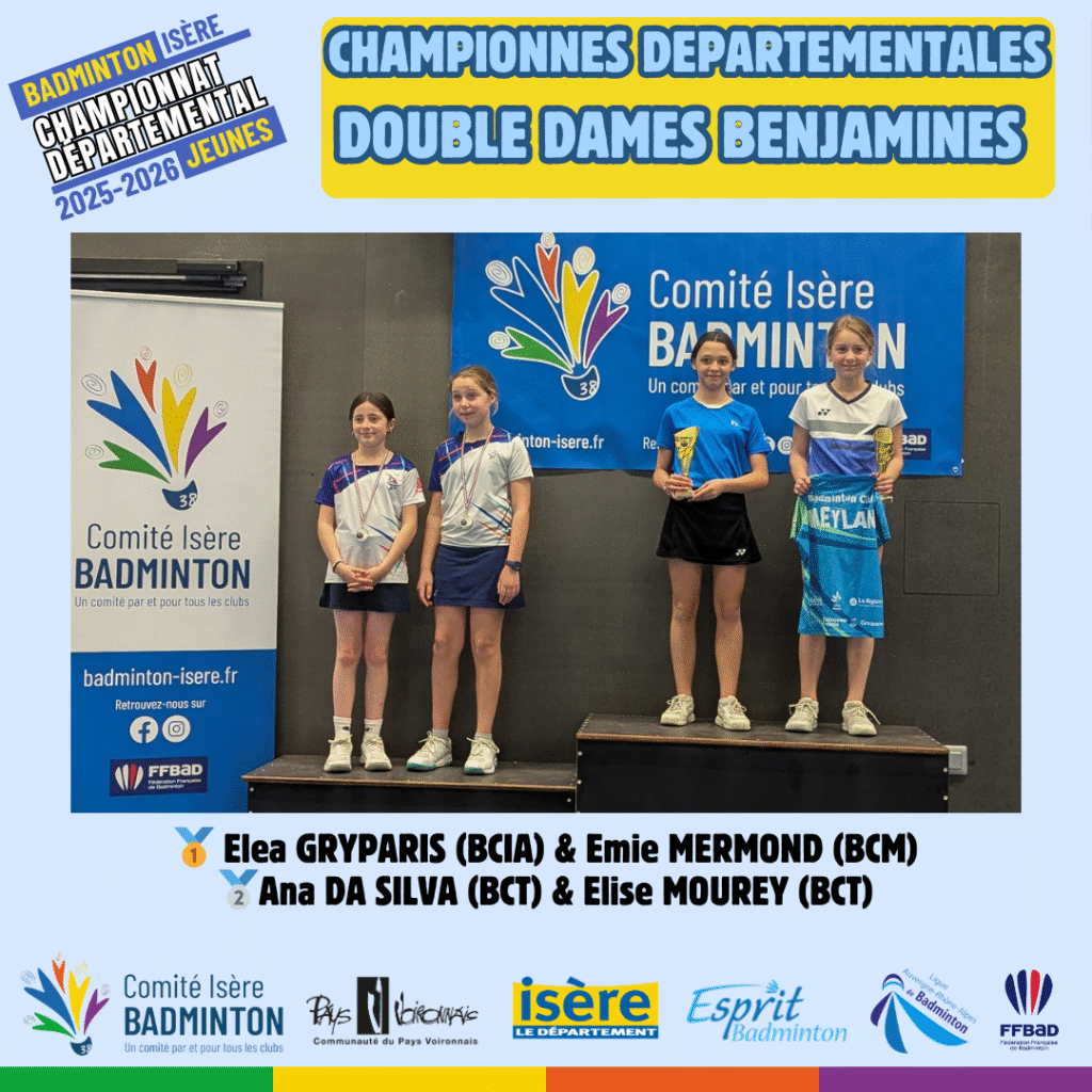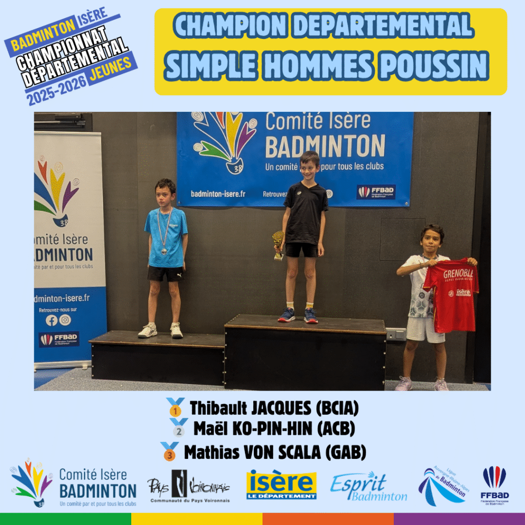 Ces 21 et 22 Mars 2026 à Voiron avaient lieux les championnats départementaux jeunes de l’Isere. De nombreux jeunes du département ont répondu présent à l’événement pour se disputer les titres de champions départementaux sur les 5 disciplines (simple hommes, simple dames, doublé hommes, double dames et double mixte) sur chacune des catégories d’âge (poussin, benjamin, minime, cadet, junior).