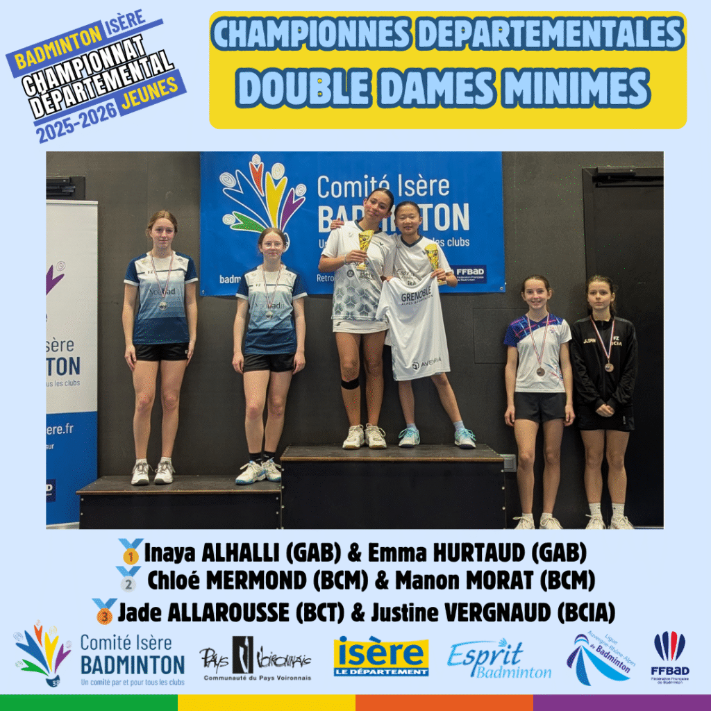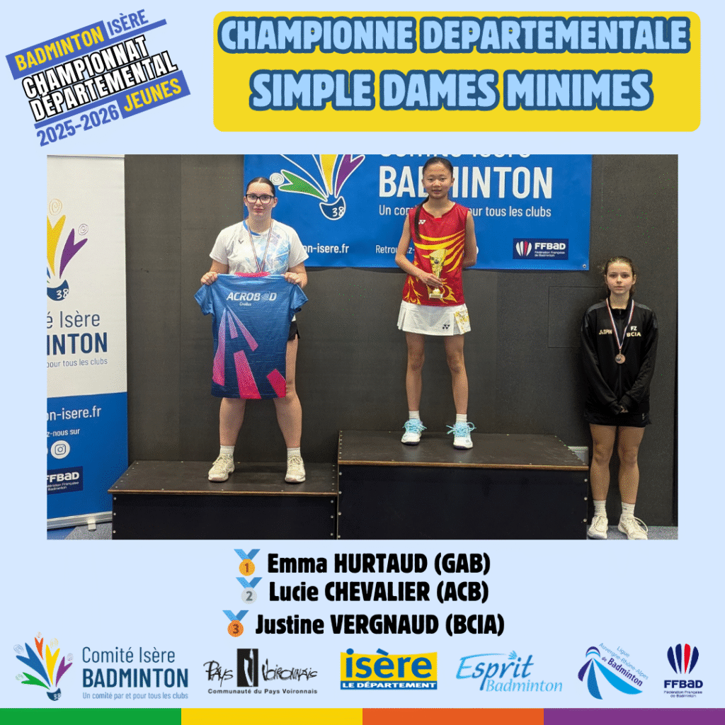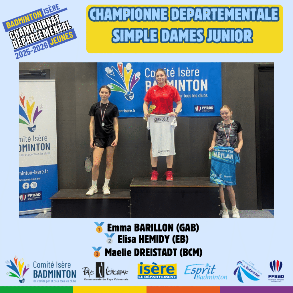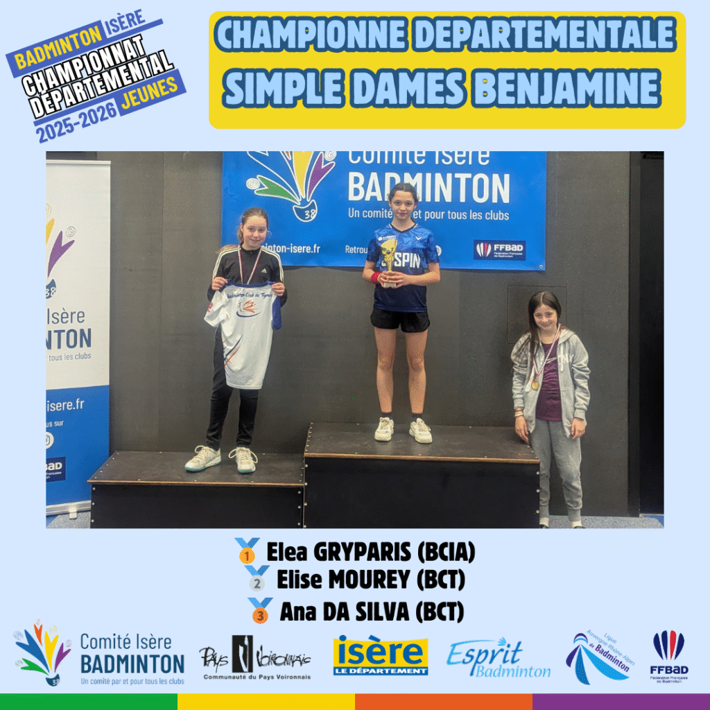 Ces 21 et 22 Mars 2026 à Voiron avaient lieux les championnats départementaux jeunes de l’Isere. De nombreux jeunes du département ont répondu présent à l’événement pour se disputer les titres de champions départementaux sur les 5 disciplines (simple hommes, simple dames, doublé hommes, double dames et double mixte) sur chacune des catégories d’âge (poussin, benjamin, minime, cadet, junior).