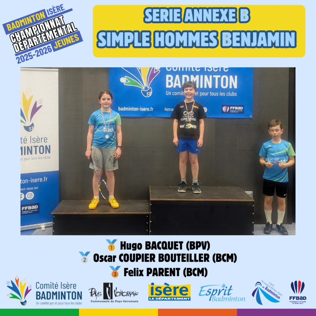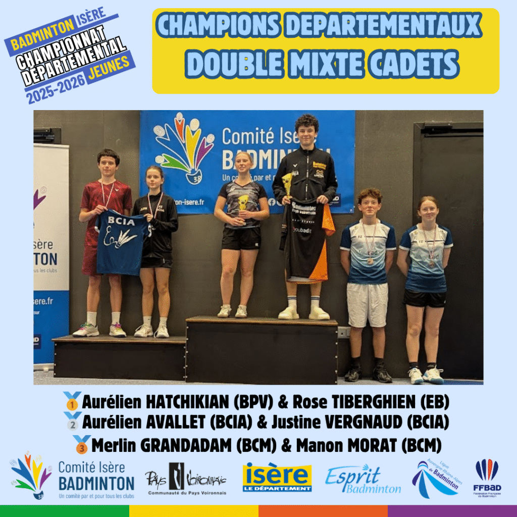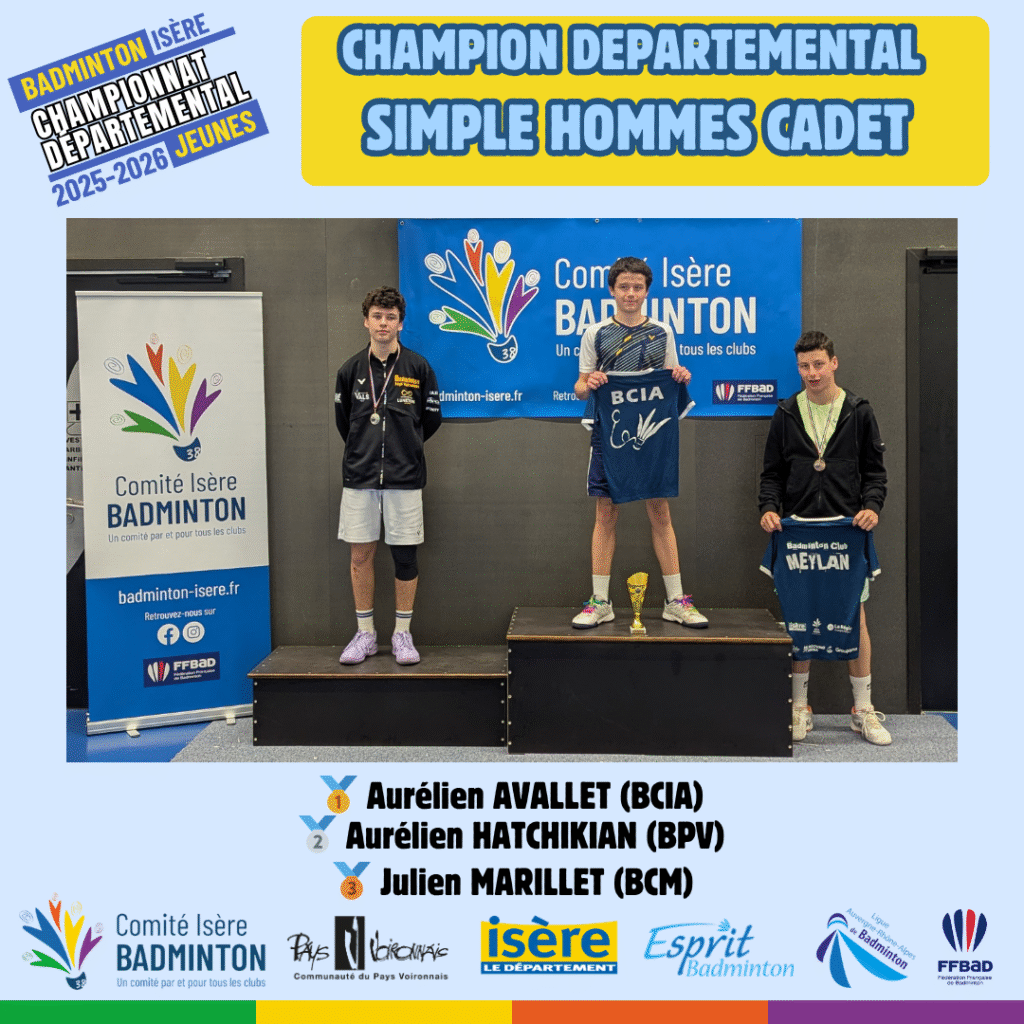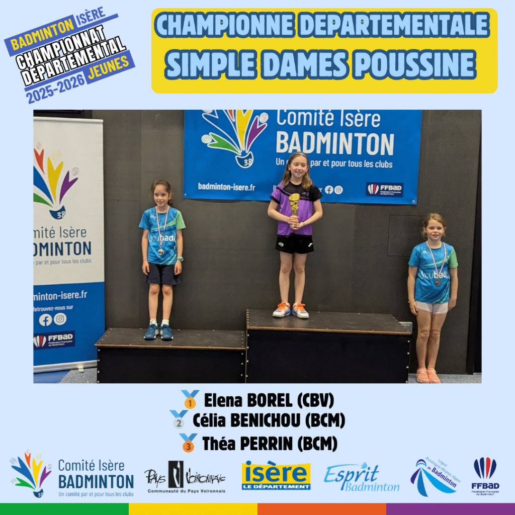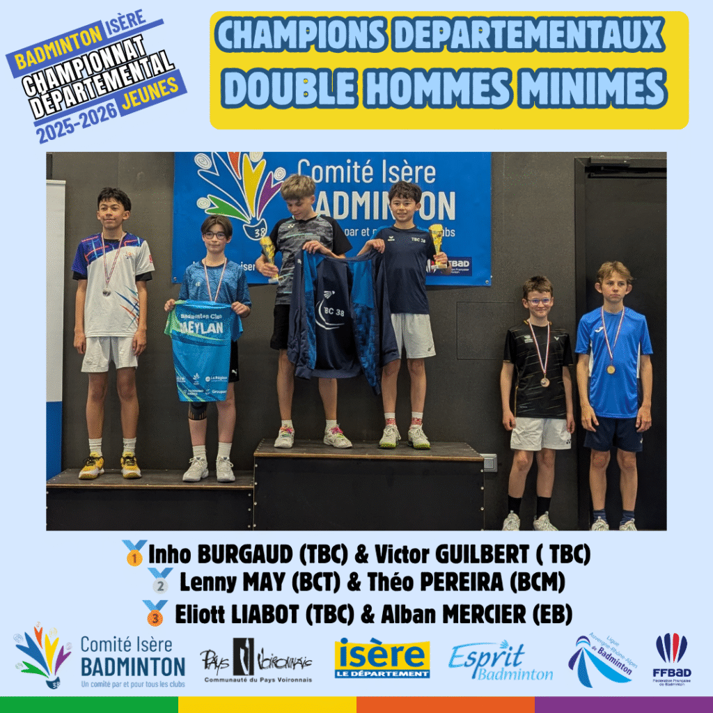 Ces 21 et 22 Mars 2026 à Voiron avaient lieux les championnats départementaux jeunes de l’Isere. De nombreux jeunes du département ont répondu présent à l’événement pour se disputer les titres de champions départementaux sur les 5 disciplines (simple hommes, simple dames, doublé hommes, double dames et double mixte) sur chacune des catégories d’âge (poussin, benjamin, minime, cadet, junior).