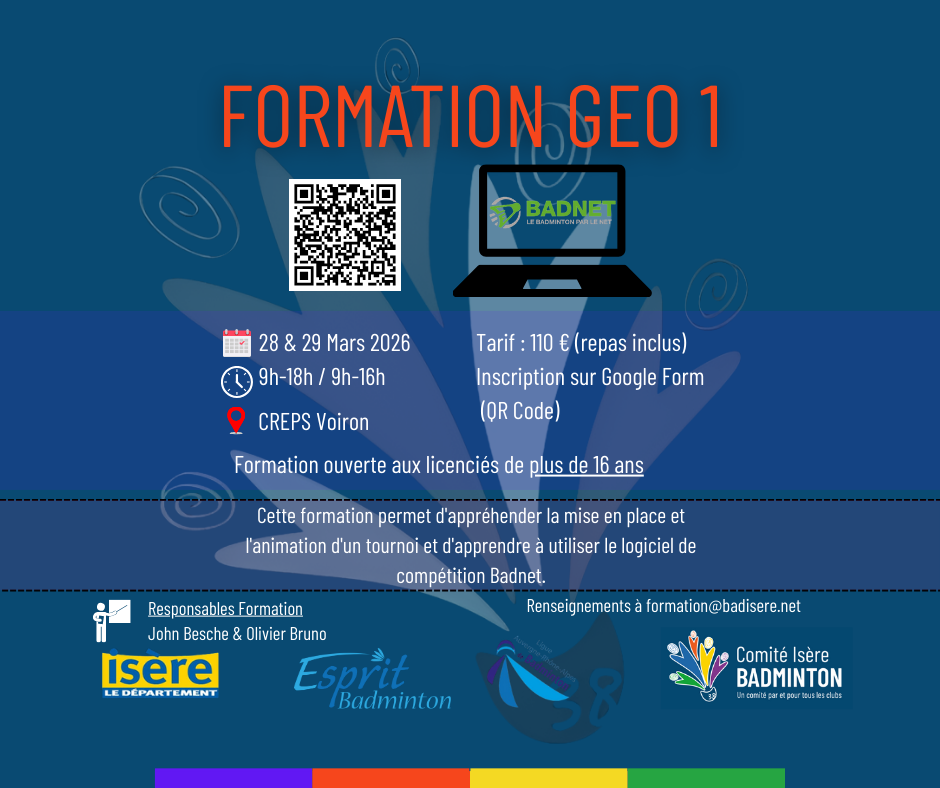 Le Comité de l’Isère de Badminton – 38 met en place une formation GEO 2 qui aura lieu le :