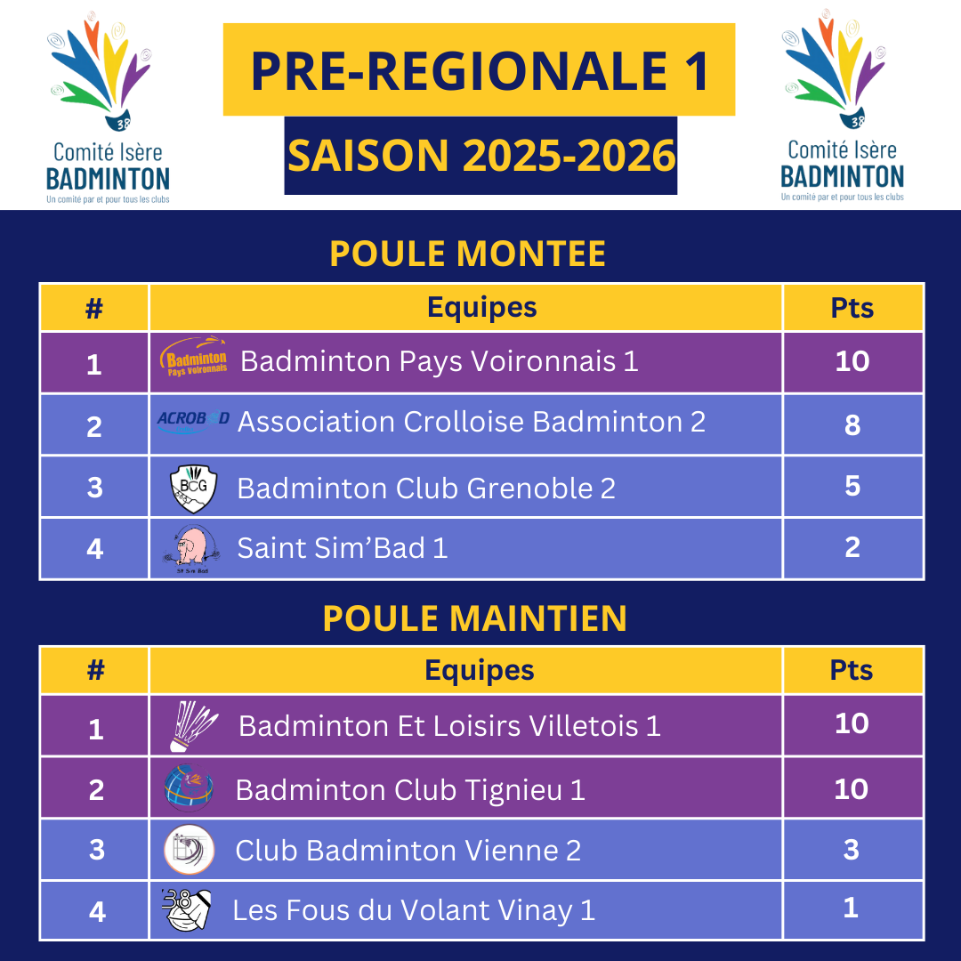 Interclubs Pré-Régionaux 2025-2026 – Fin de la première phase