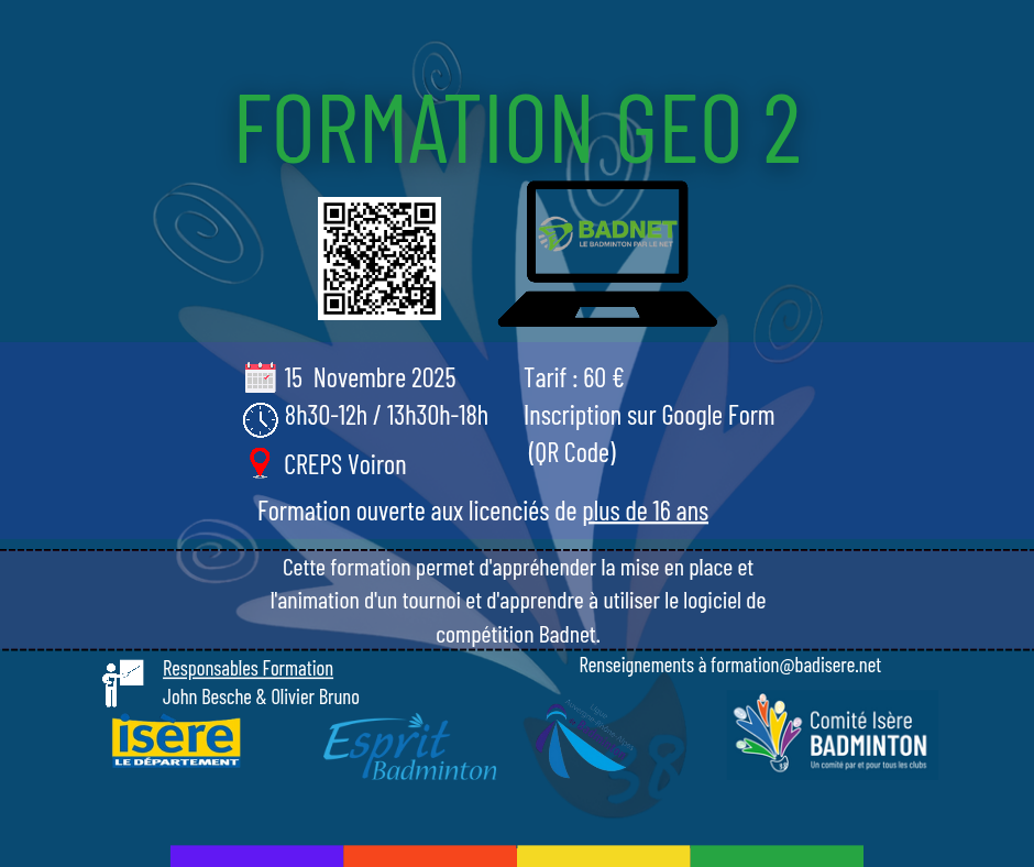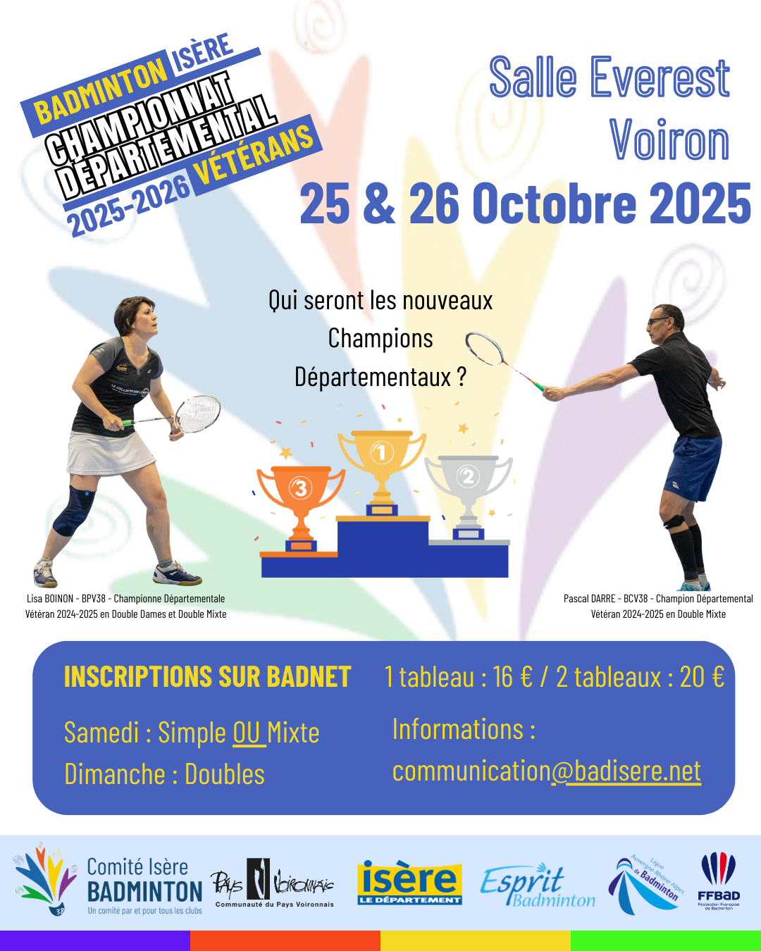 Le Comité de l’Isère de Badminton est ravi de vous accueillir pour son championnat Départemental qui aura lieu les 15 et 16 juin 2024 à la Salle EVEREST à VOIRON. … Lire la suite