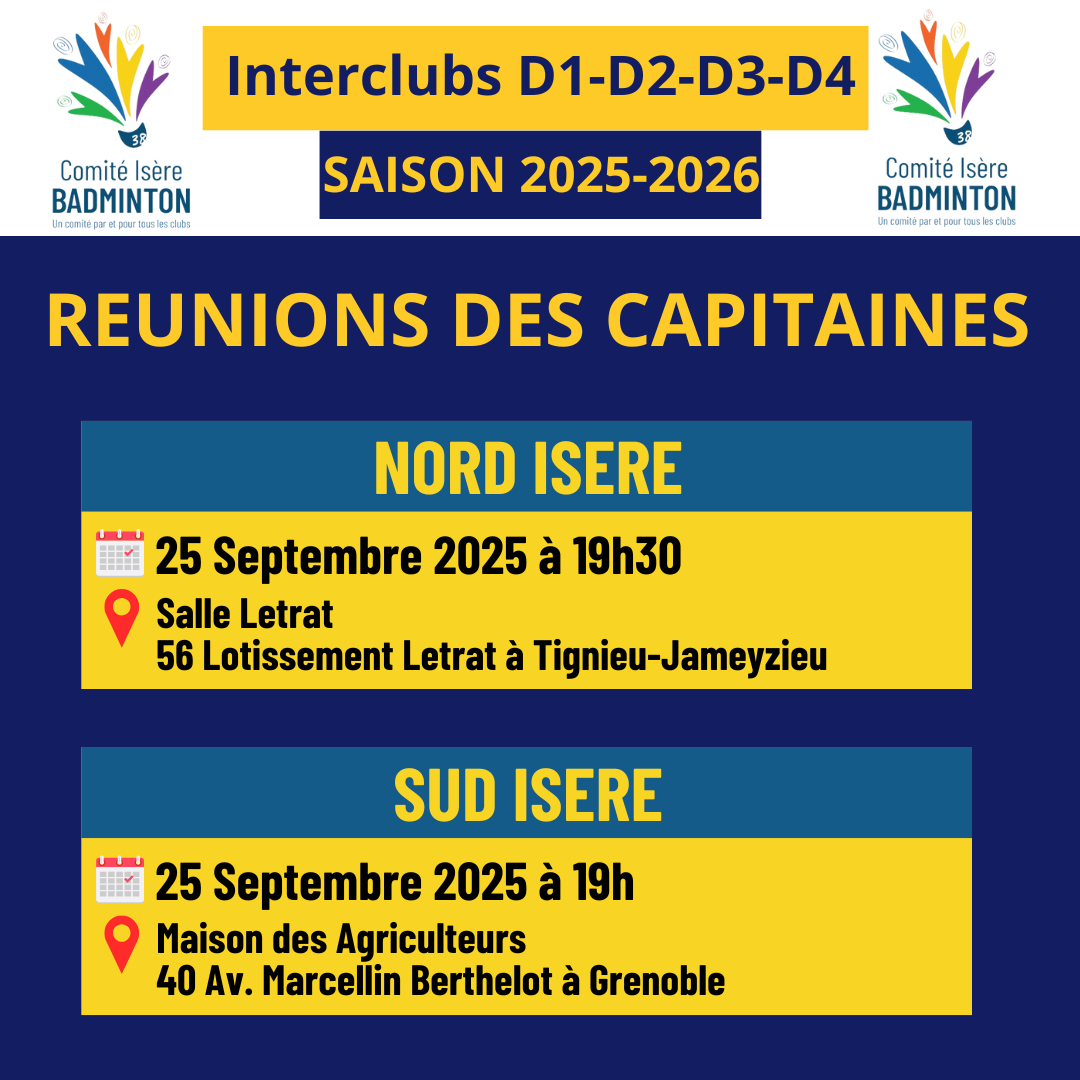 La saison des interclubs reprend ! Et le Comité de l’Isère convie les capitaines des équipes des divisions D1 à D4 à une réunion présentant les Interclubs Départementaux version 2025-2026. … Lire la suite